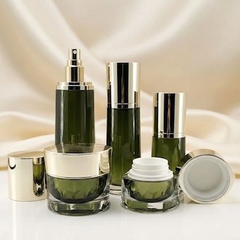 The entire range of skincare product packaging includes acrylic, PET, PP airless, plastic tubes, and glass product series.