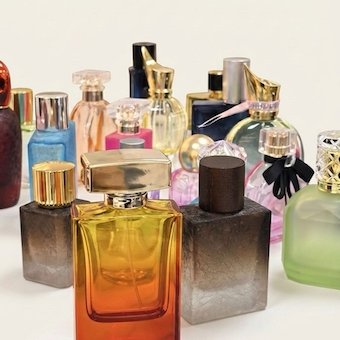 Delicate glass perfume bottles with intricate caps, designed to capture the essence of luxury and sophistication.